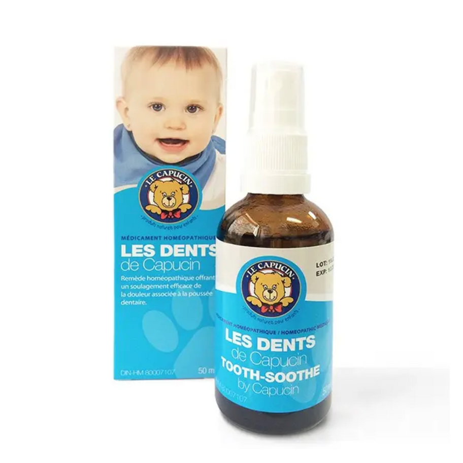 Les Dents de Capucin est une formule homéopathique, approuvée par Santé Canada, offrant un soulagement efficace de la douleur associée à la poussée dentaire. Cette formule soulage efficacement les gencives inflammées et douloureuses, la fièvre reliée à la poussée dentaire et l'irritabilité.