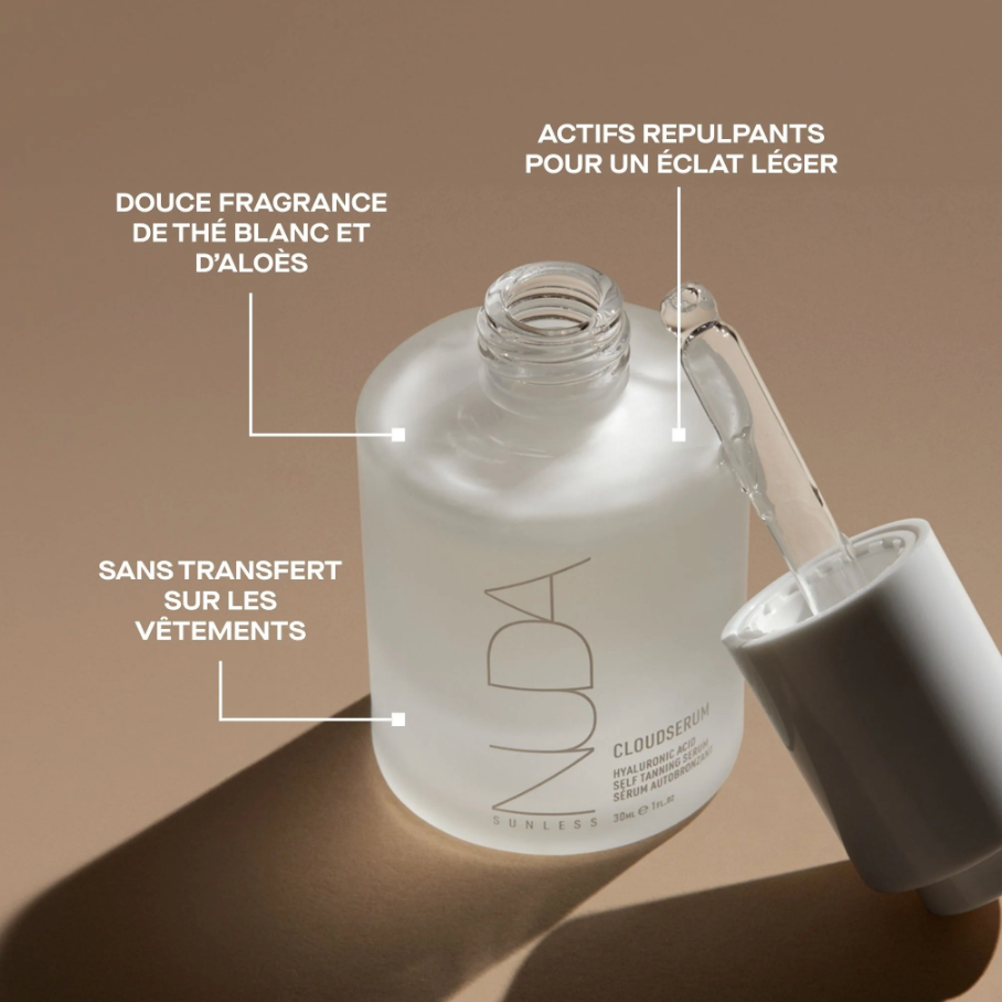 Le matin, appliquez le Sérum solaire minéral SolarGlow™ de Nuda SPF 30.